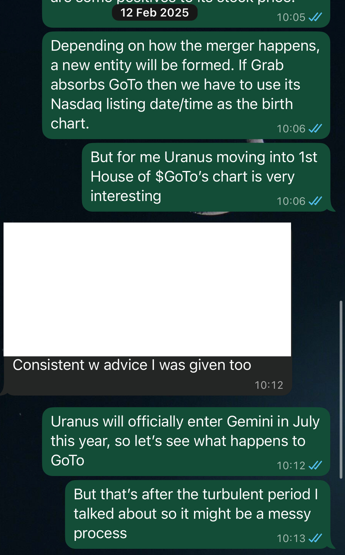 All these said, with all the experience I’ve gathered so far, I cannot help but say that the charts speak to me, and everything is starting to align. The first mistake I made was forgetting that Uranus was about to retrograde, which is why things stalled. As it goes direct again, unfinished business will be set in motion. GoTo’s CEO stepping down is a clear sign that things are about to move, and he was removed for a reason I already knew long ago. Analysing the new CEO’s chart would be interesting.