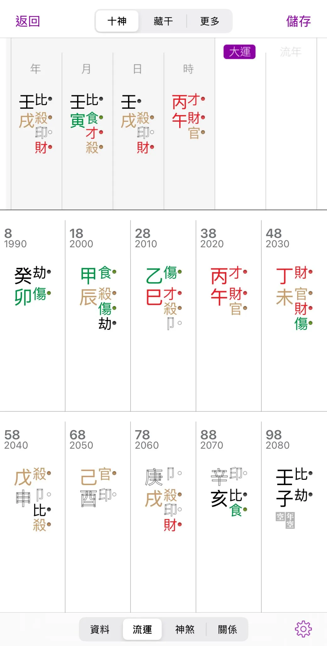 The two Yang Water 壬水s on his Year and Month Stem technically disqualify his chart as a Follower Chart, and if that is the case, his chart falls under a weak Daymaster 正格。Now, basic BaZi knowing tells us that if a Daymaster is weak, we strengthen it because if we don’t, it’s the Daymaster that starts to get burdened by the Wealth Elements, and it doesn’t actually mean amassing wealth.