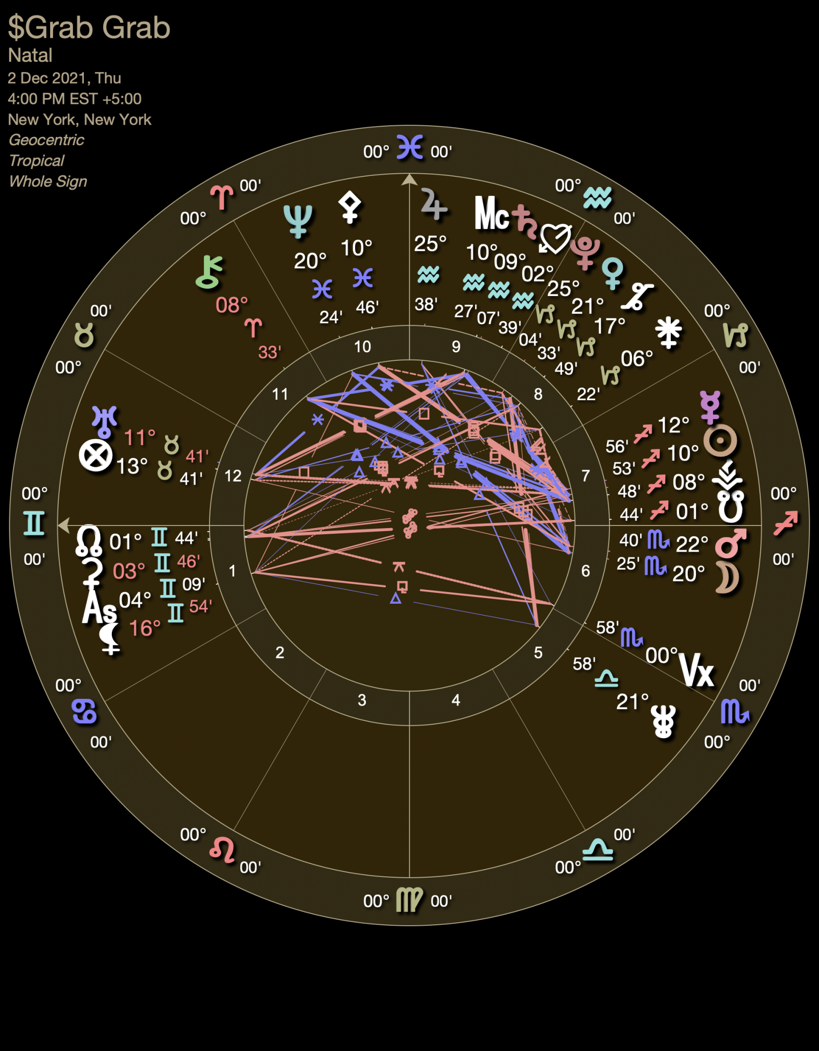 Grab IPOed on 2nd December 2021, and it started pre-market trading at 4:00 AM EST. I know it is listed via a SPAC, but we will not use this old entity as Grab’s birth chart. We’ll use the date when it started trading as Grab, a new entity. Here is the birth chart: